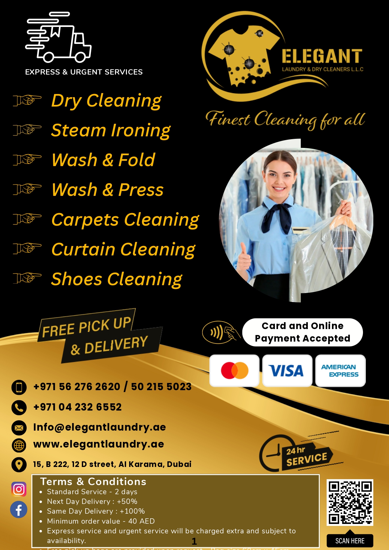 Free Pick-Up and Delivery / Quick Turnaround / Top-Quality Service / Professional Service / Reliability / Dry Cleaning / Shoes Cleaning / Sofa Cleaning / Mattress Cleaning / Carpet Cleaning / Curtain Cleaning
